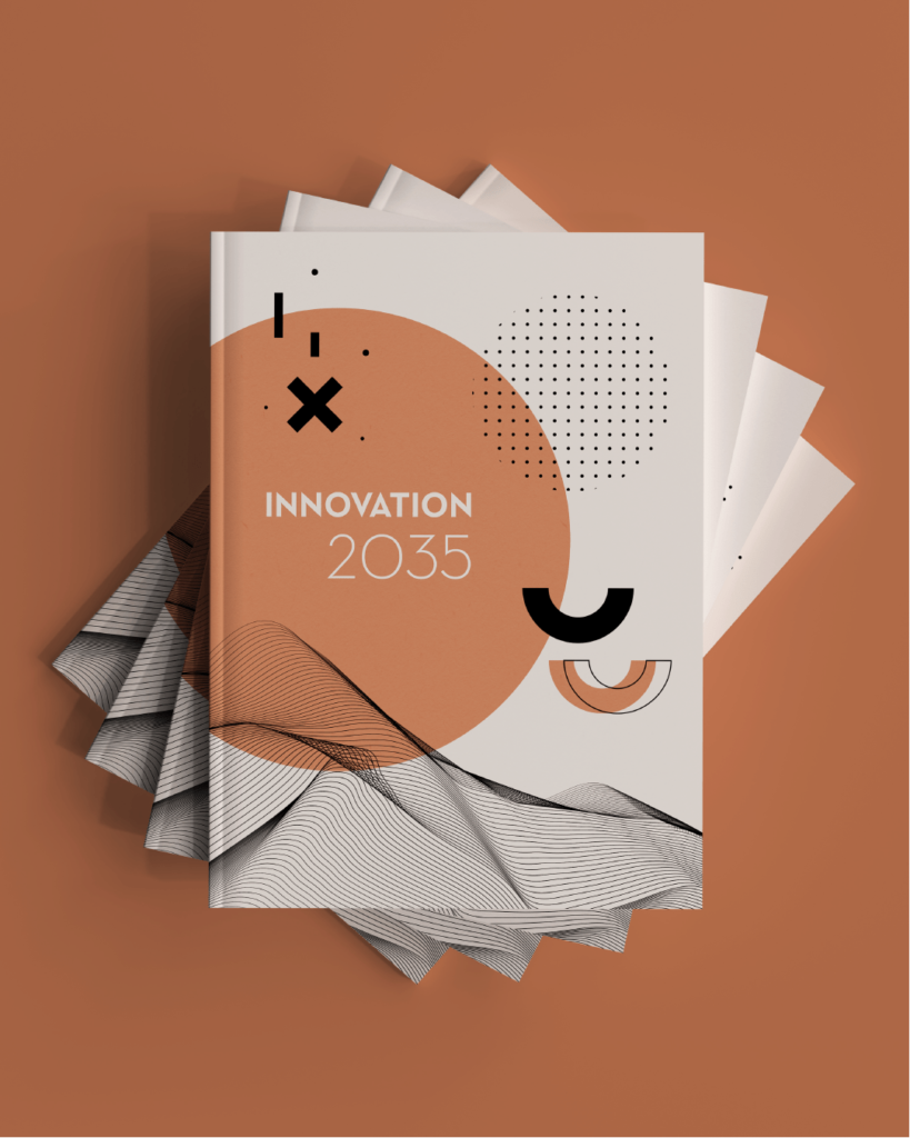 Booklet design for HDBI about the foresight results for the possible development in Greece by 2035